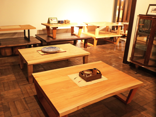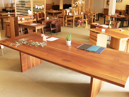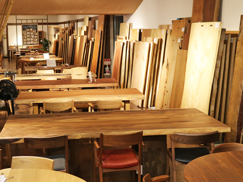 ウォールナット材・ブラックチェリー材・オーク材・ケヤキ材など 人気の樹種を展示しています