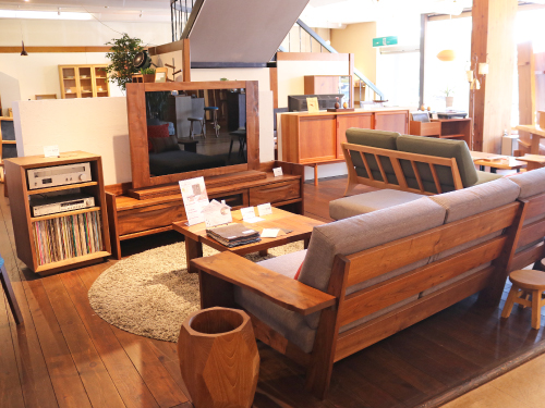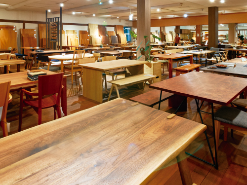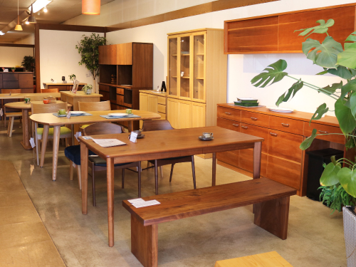 暮らしの中心となる家具をご覧いただけます。天然木ならではの木目や質感、使い込むほどに深まる風合いをぜひ手に取ってお確かめください。