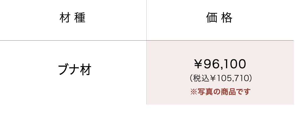 | 備 考 | 商品はひとつひとつ製作いたします。そのため木目は写真の商品と異なります。ご了承ください。 |