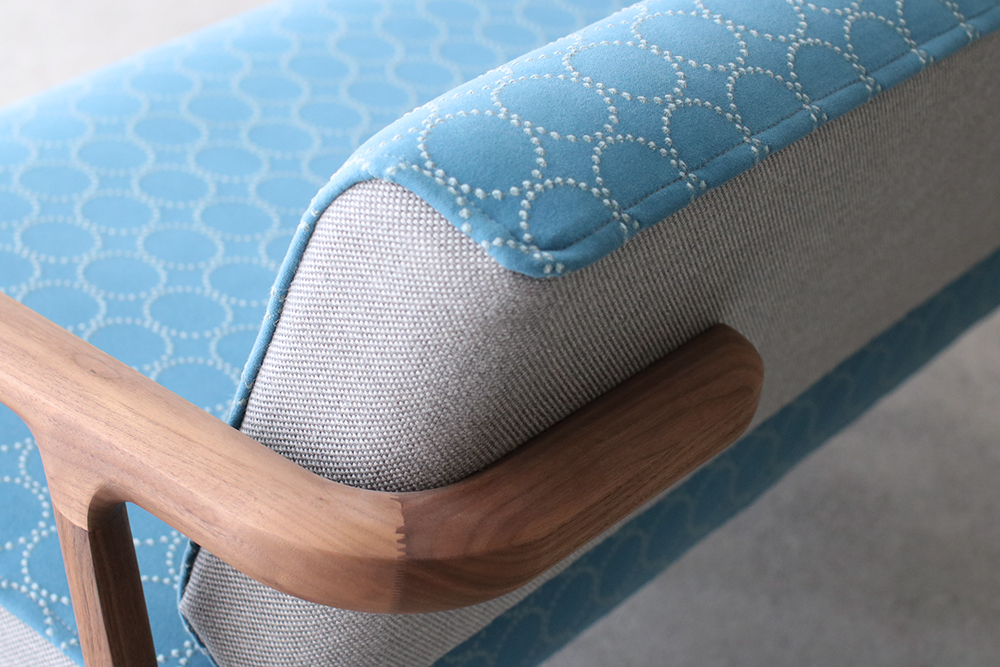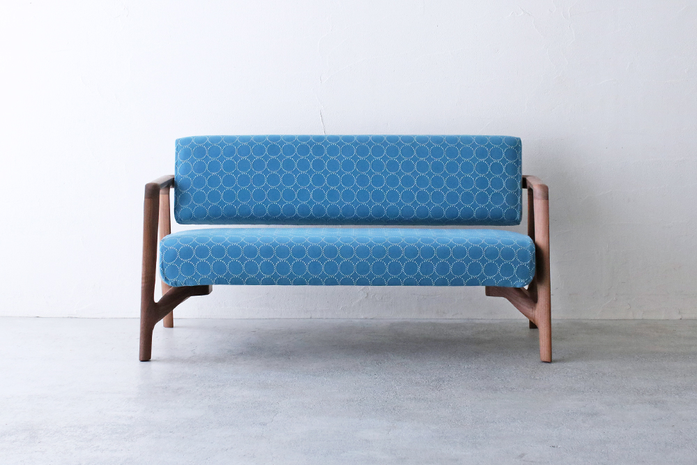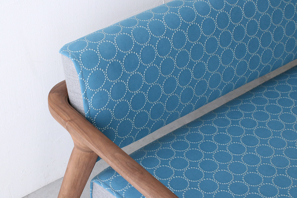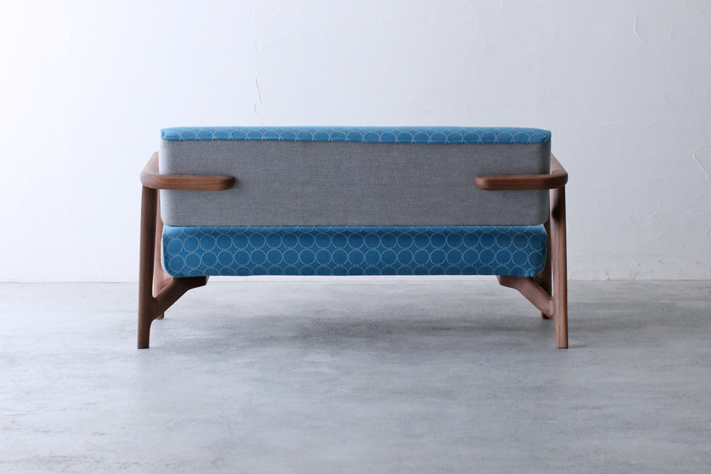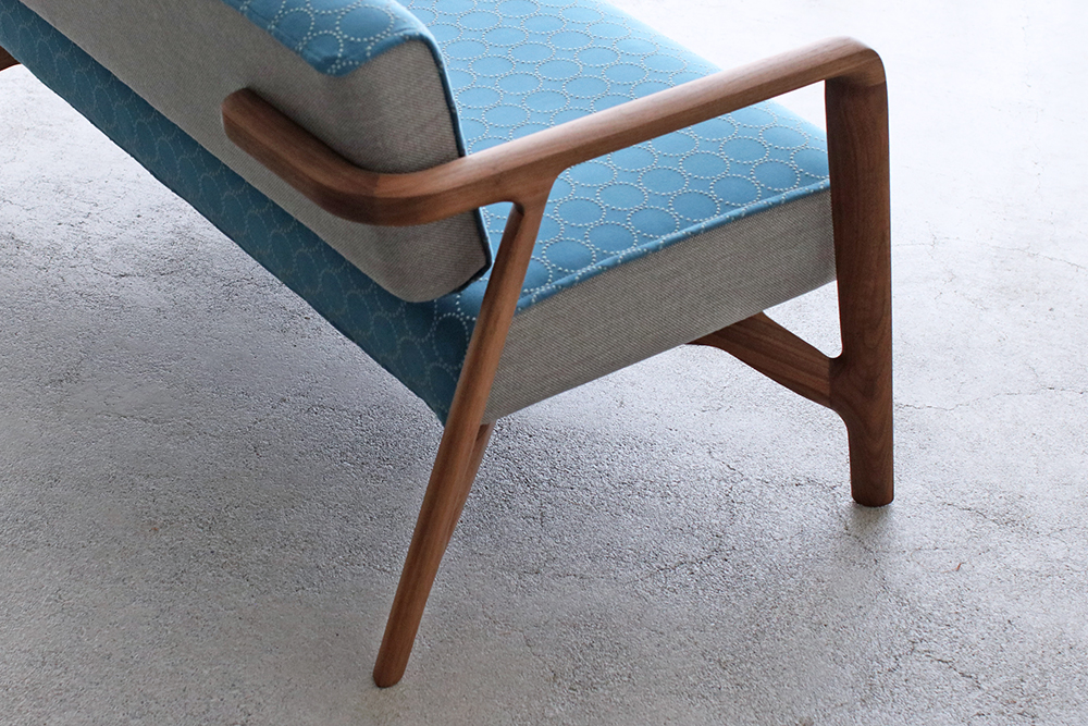 左右独立しながらも一体感を見せる独特なフレームデザインのソファです。