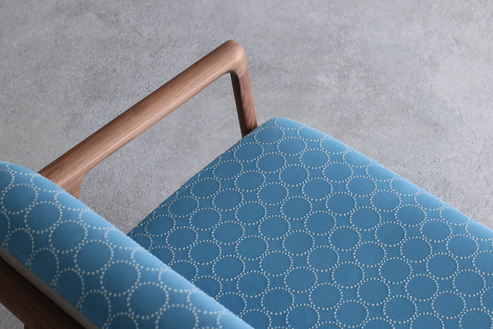 背面にフレームがないので、背もたれ部分が浮いているようにみえ、スッキリとした細身のフォルムながらもウォールナットの存在感が魅力です。