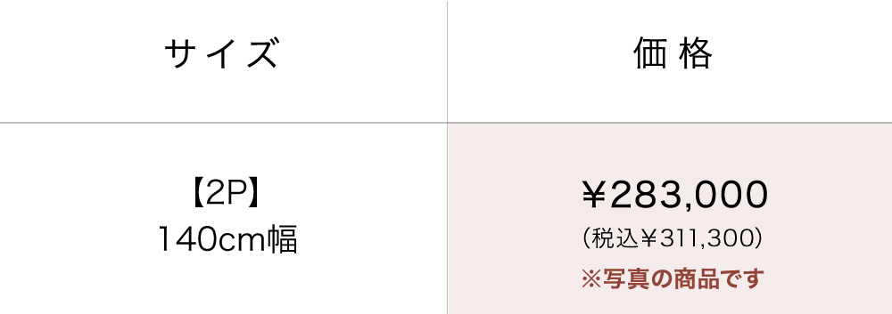 | 金 額 | 【2P】 311,300円(税込価格) 283,000円(本体価格) |