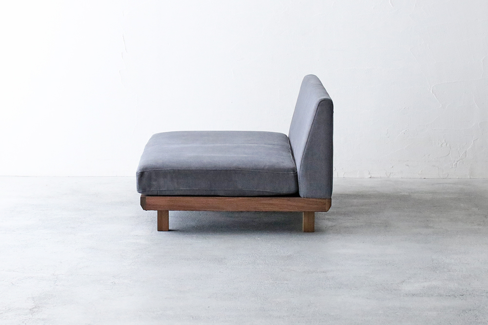 シンプルなアームレスのロースタイルソファ。背クッションがなく、座面は奥行72cmと広々としていてゆったりと座ることができます。暖かみのある天然木のフレームで、背面の高さも62cmと低めなのでお部屋が広くスッキリとみえます。