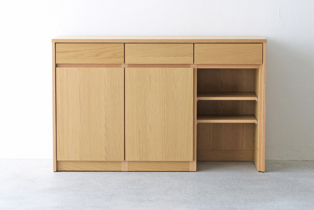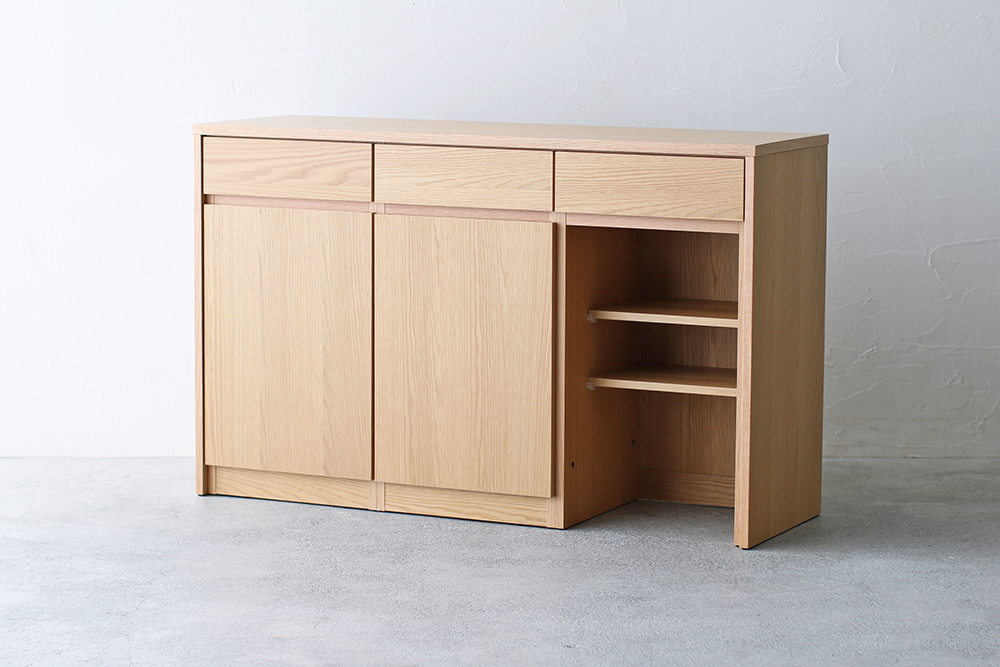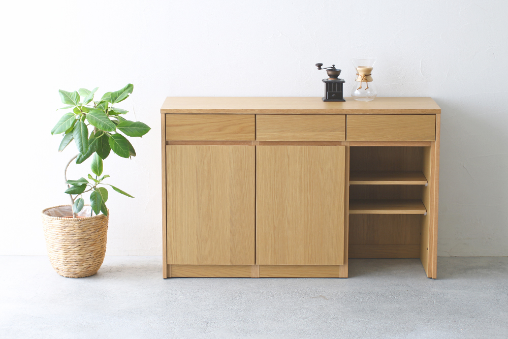 のコンパクトサイズもございます収納力と機能性のあるオーク材のカウンター。