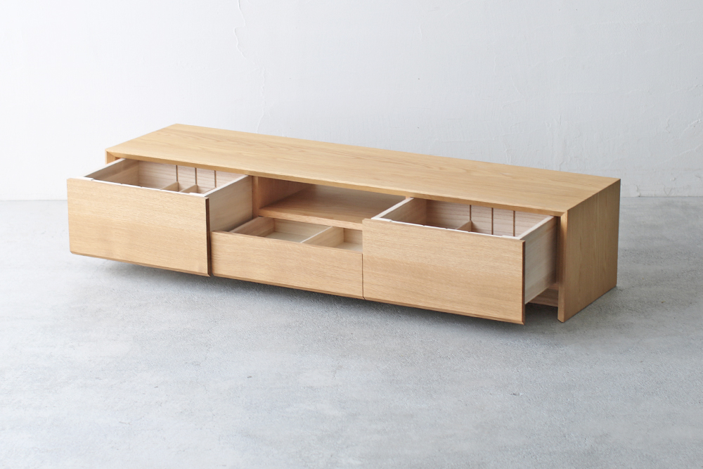 | 仕 様 | 前板:オーク無垢材 天板・側板:オーク突板材 引き出し内部:桐材 |