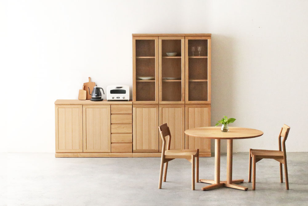 | 仕 様 | 前板:オーク無垢材・突板材(裏側) 側板:オーク突板材 ガラス:透明ガラス |