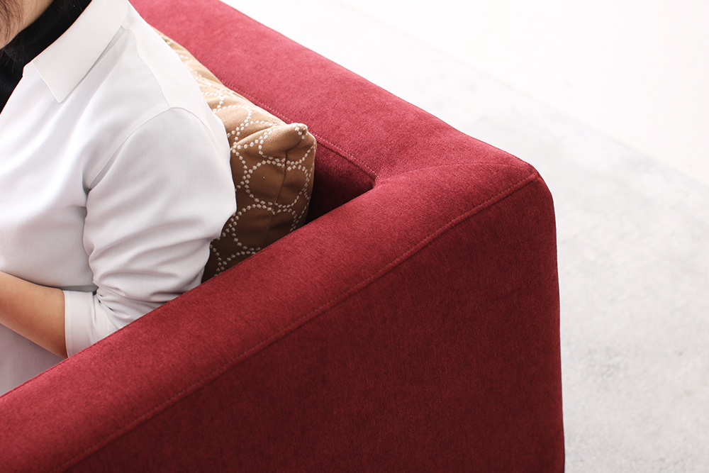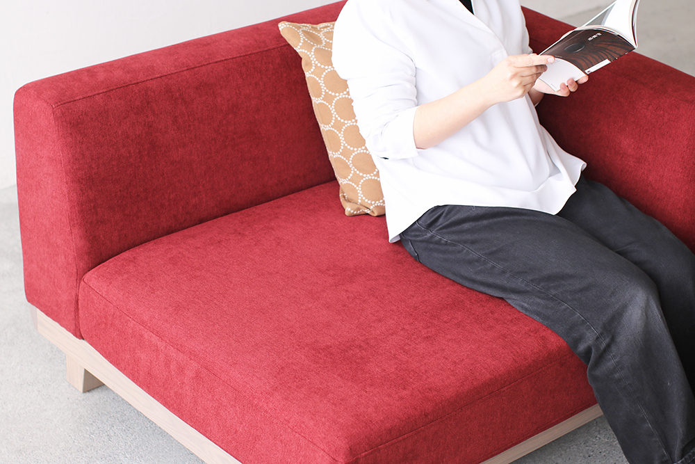 片側にのみ肘掛けを設けることで、横幅を有効的に使え、座れる面積が広くなっています。お子様やペットと並んでお座りいただけます。