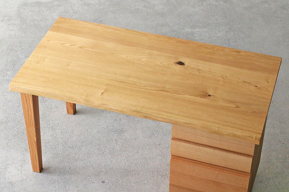 耳付きクリ無垢天板のデスクです。クリ材の質感やぬくもりをお楽しみいただけます。