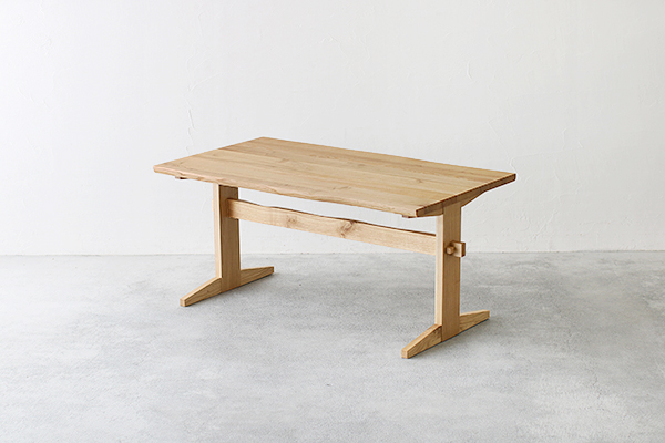 硬くて丈夫、そして水や湿気に強いクリ材のダイニングテーブル。木目が美しいのもクリ材の特徴です。やわらかな優しい色合いから長くお使いになるにつれ深みある味わい深い色合いへと変化していきます。材質だけでなく楔を使うなど和洋どちらにも合うデザインが印象的です。