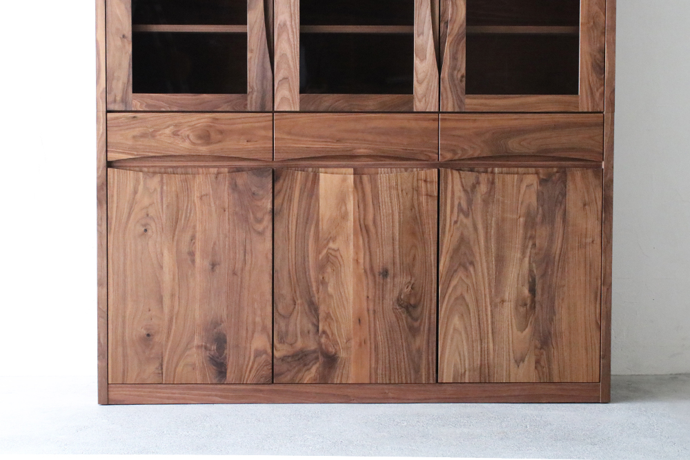 | 仕 様 | ガラス開戸・引き出し前板:ウォールナット無垢材