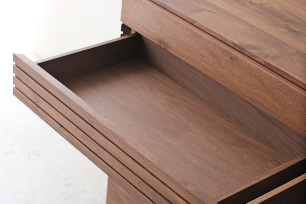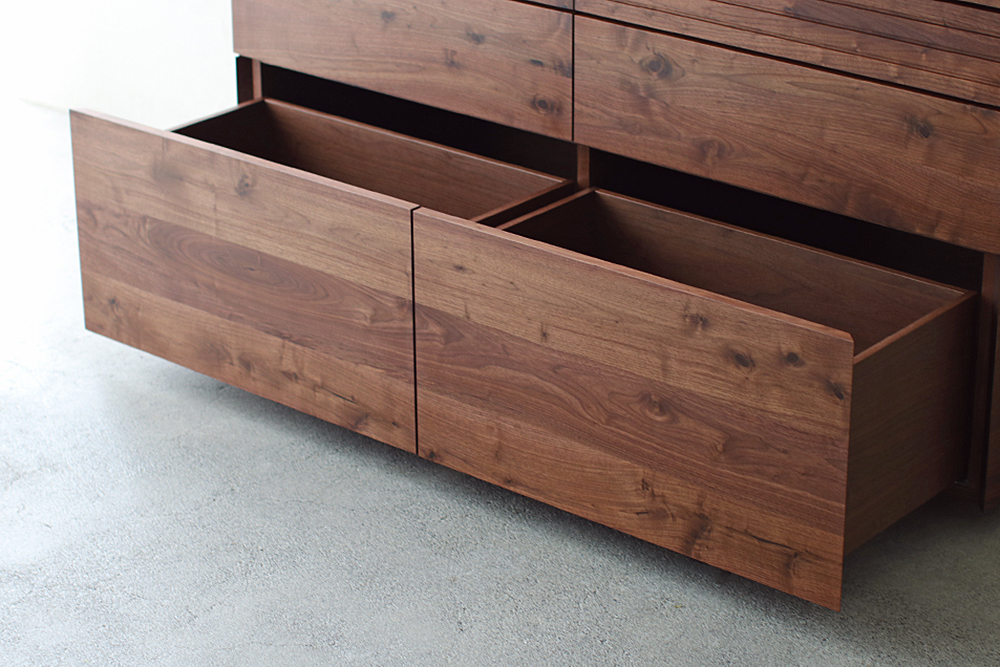 引き出しの数を増やし、引き出し内部の樹種をブラックチェリー材にしました