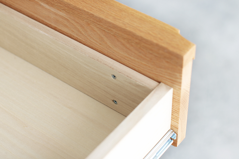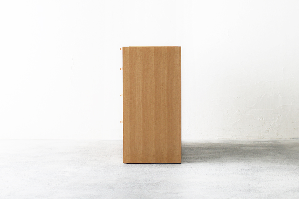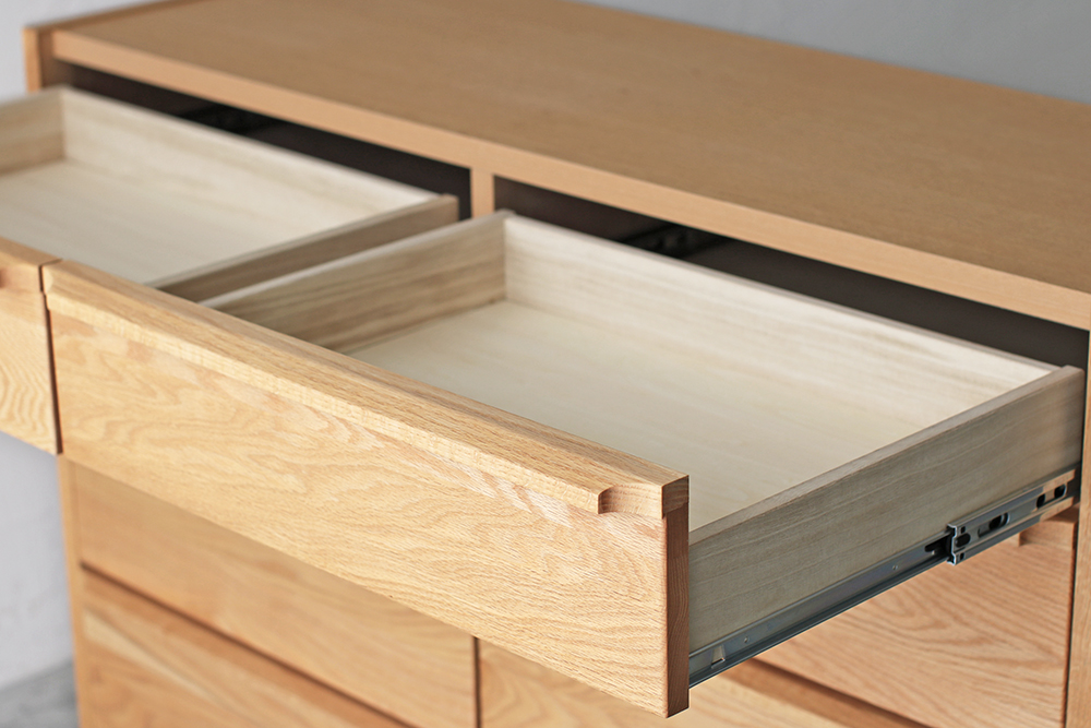 | 仕 様 | 前板:オーク無垢材 天板・側板:オーク突板材 引き出し内部:桐材 引き出し1〜4段:スライドレール付き |