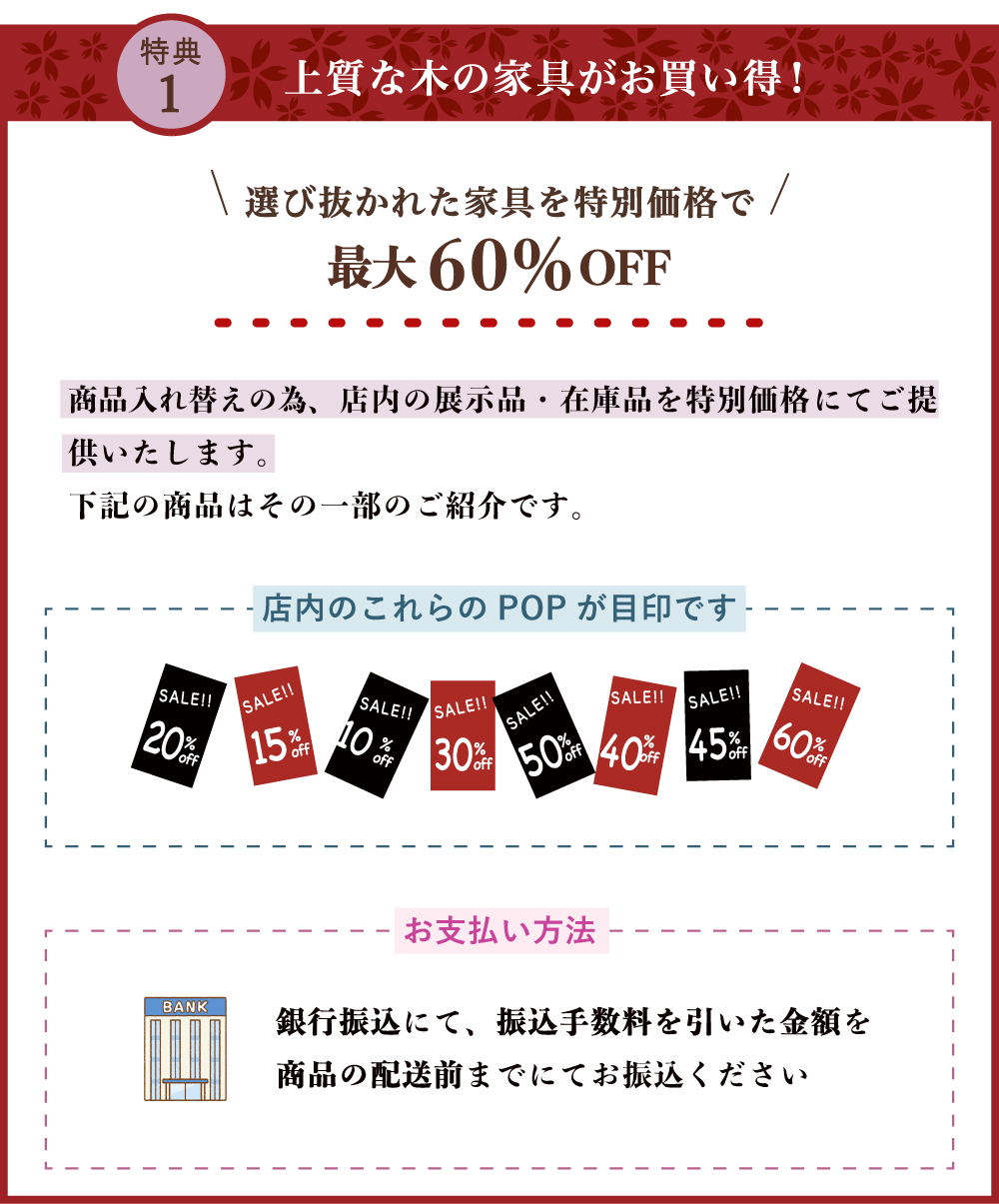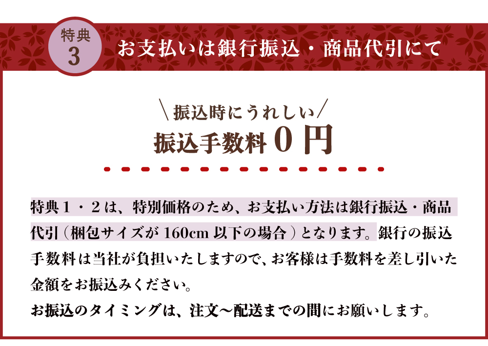 ※今回のSALEは特別価格のため、お支払いはお届け前までに銀行振込にてお願いいたします。