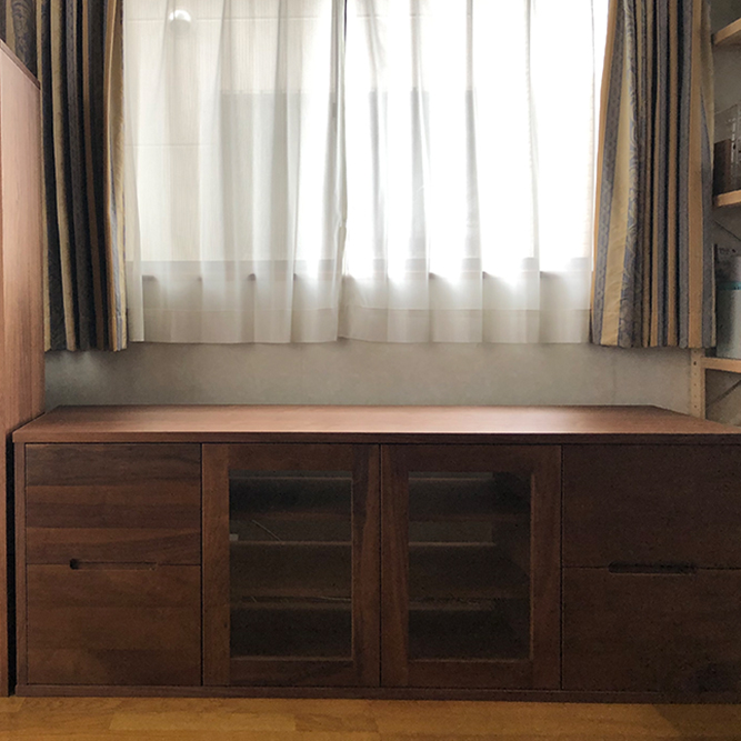 特注カウンターテーブルとテレビ台チェスト O様邸(静岡市)カウンターテーブル・収納W1664・W654