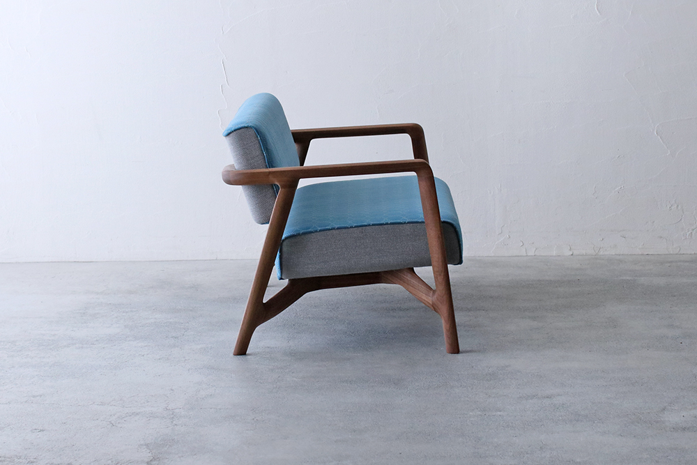 左右独立しながらも一体感を見せる独特なフレームデザインのソファです。