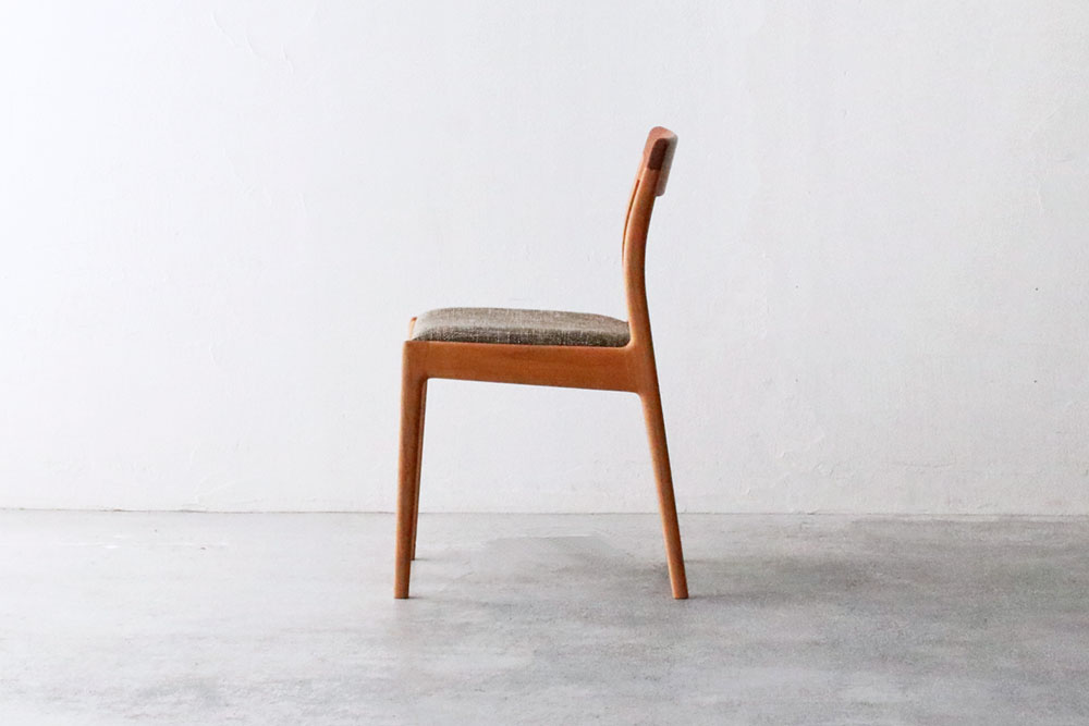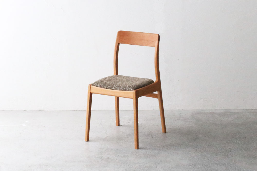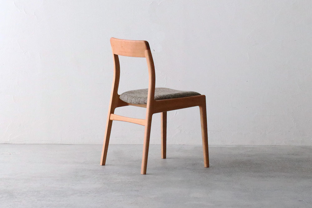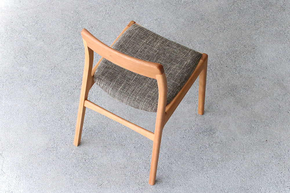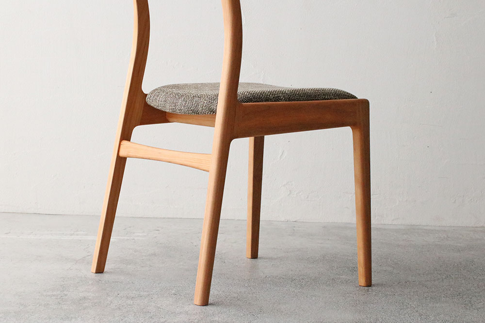 小ぶりでシンプルなチェアです。色味は優しいナチュラルテイストでお部屋の雰囲気も明るくなりそうです。背板と後脚の接合部がピタッと合っており、シャープでありながら、メリハリが効いたフォルムとなっています。角が面取りされているので、肌あたりもやわらかく座り心地も快適です。