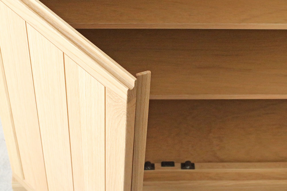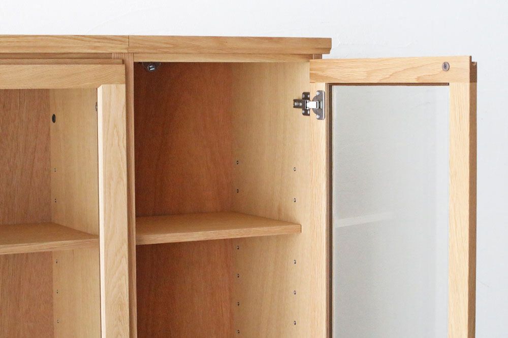 | 仕 様 | 前板:オーク無垢材・突板材(裏側) 側板:オーク突板材 ガラス:透明ガラス |