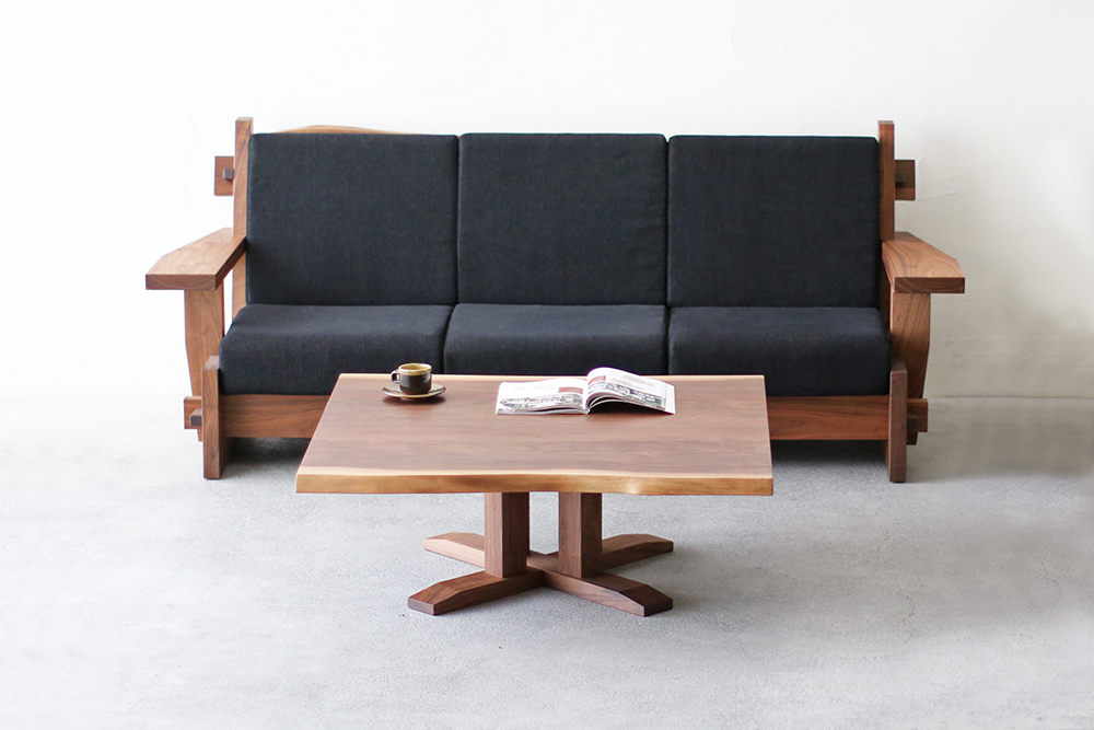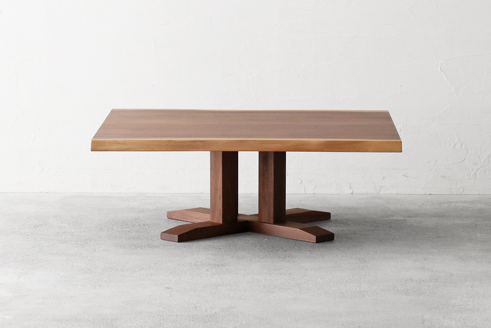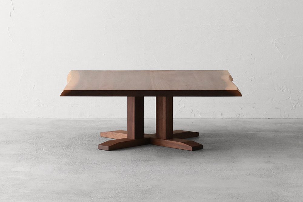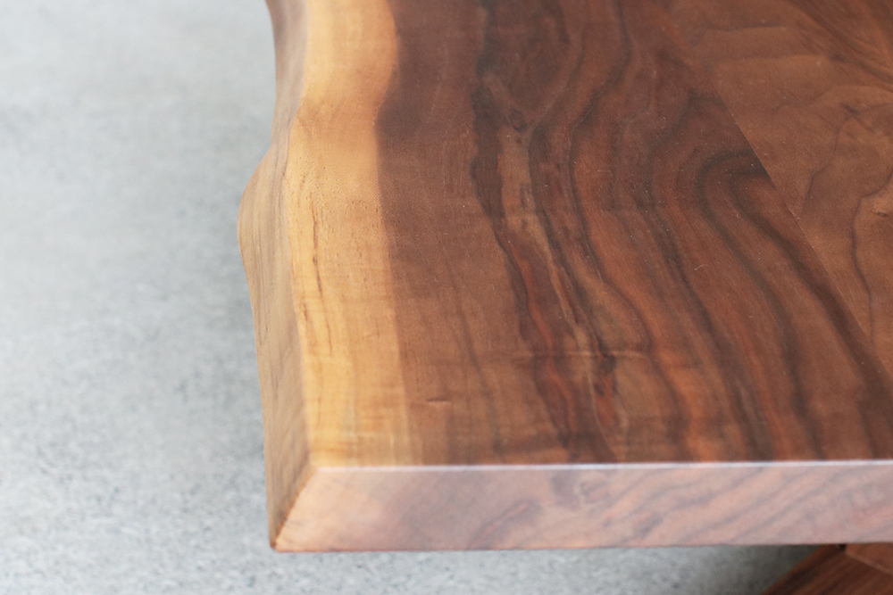 耳付きのウォールナット材を使用した重厚感あるリビングテーブルです。