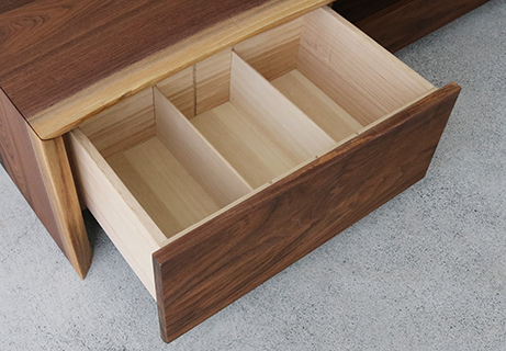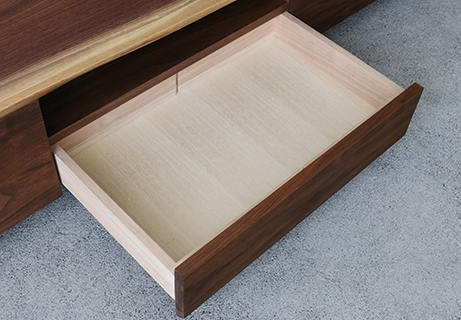 | 仕 様 | 天板・側板・前板:ウォールナット無垢材 引き出し内部:桐材 |