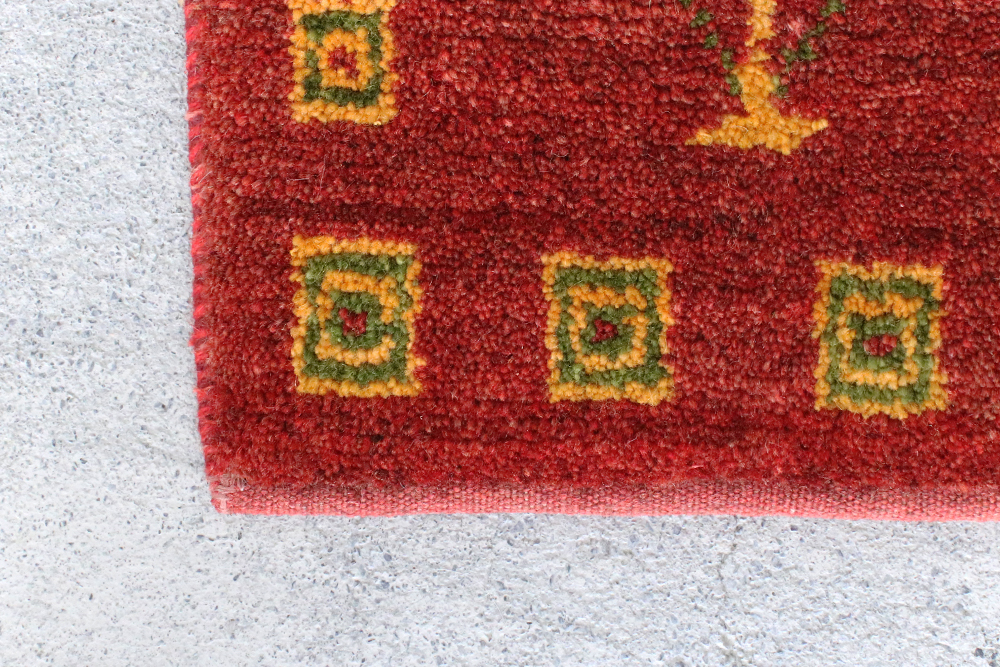ギャッベは、イランの遊牧民が一枚一枚手織りした絨毯なので一点物となります。手織りの商品ですので、少々のサイズ違いや、ゆがみがございます。