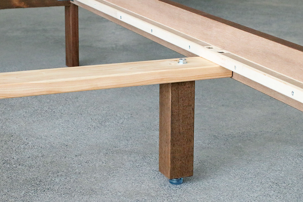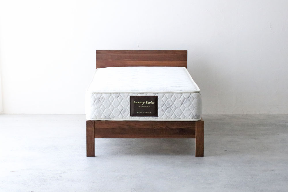 樹種はウォールナット材・ブラックチェリー材・オーク材の3種類から、サイズはシングル・セミダブル・ダブルの3サイズからお好みに合わせてお選びいただけます。
