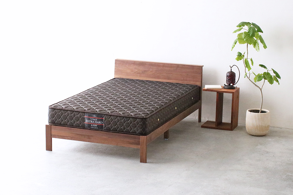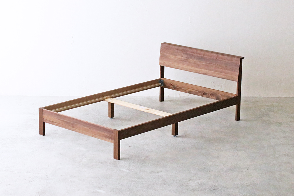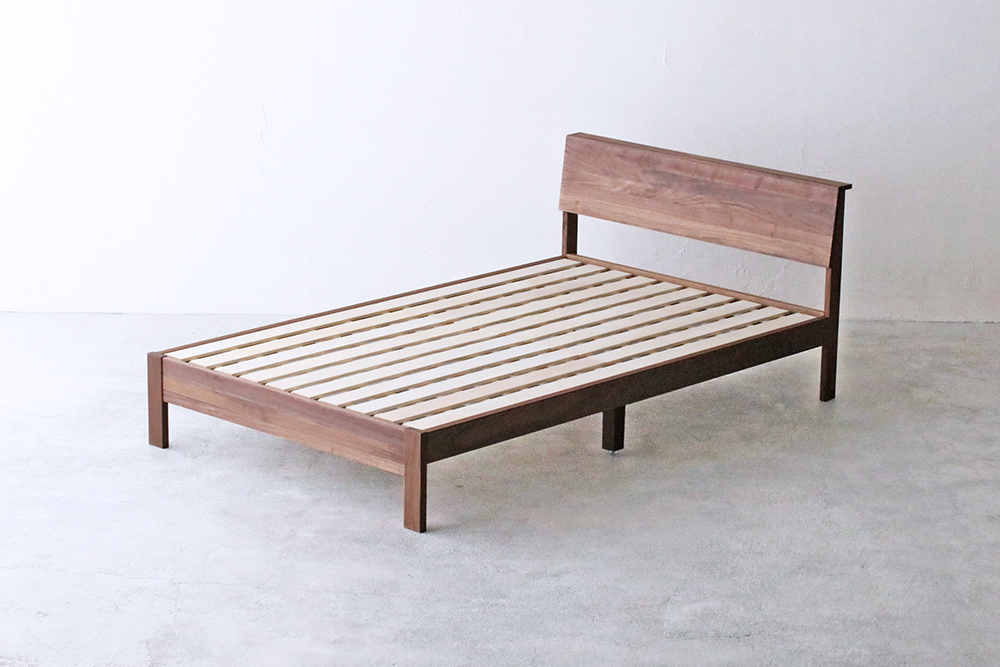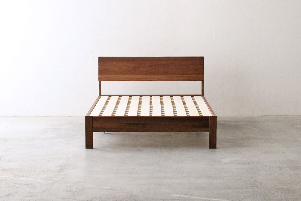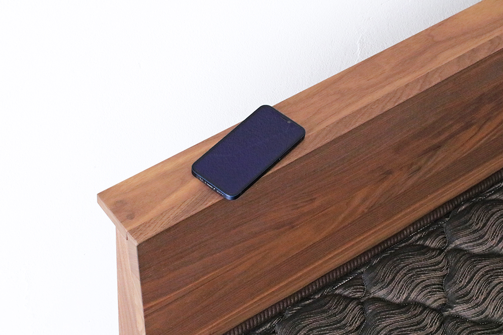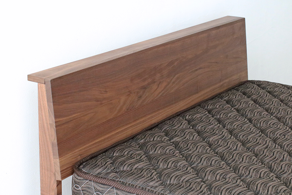 ヘッドボードにウォールナット無垢材を使用したベッドフレーム。