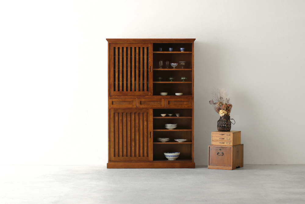 毎日のお食事を美味しく頂くための器は、いつまでも大切に使いたいもの。お気に入りの器を綺麗に使いやすく収納できる水屋タンスです。