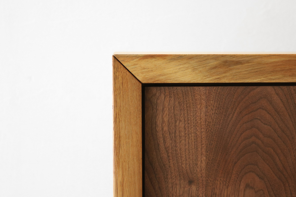側板と天板のつながりが「門」に似ていることから名付けられた「MONシリーズ」です。耳付きの側板と天板を45度に組んだ留め加工が特徴的で魅力でもあります。