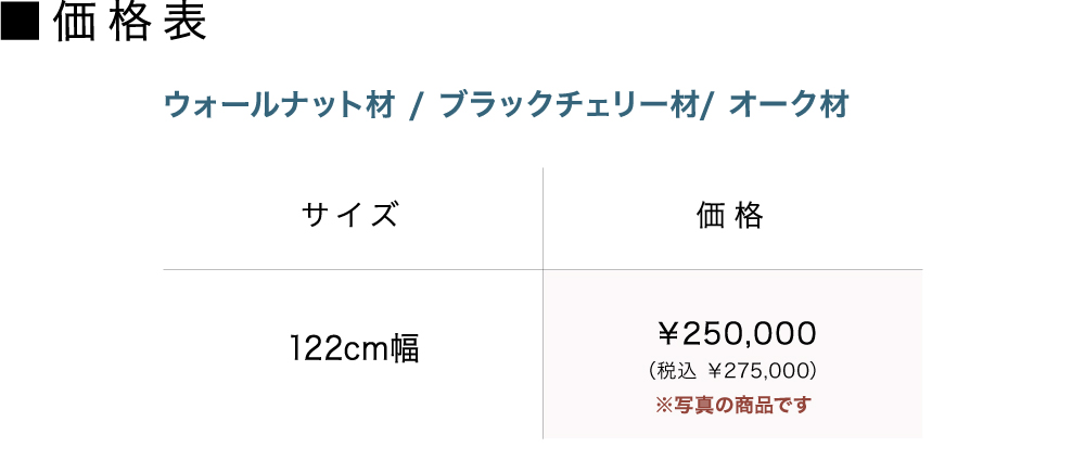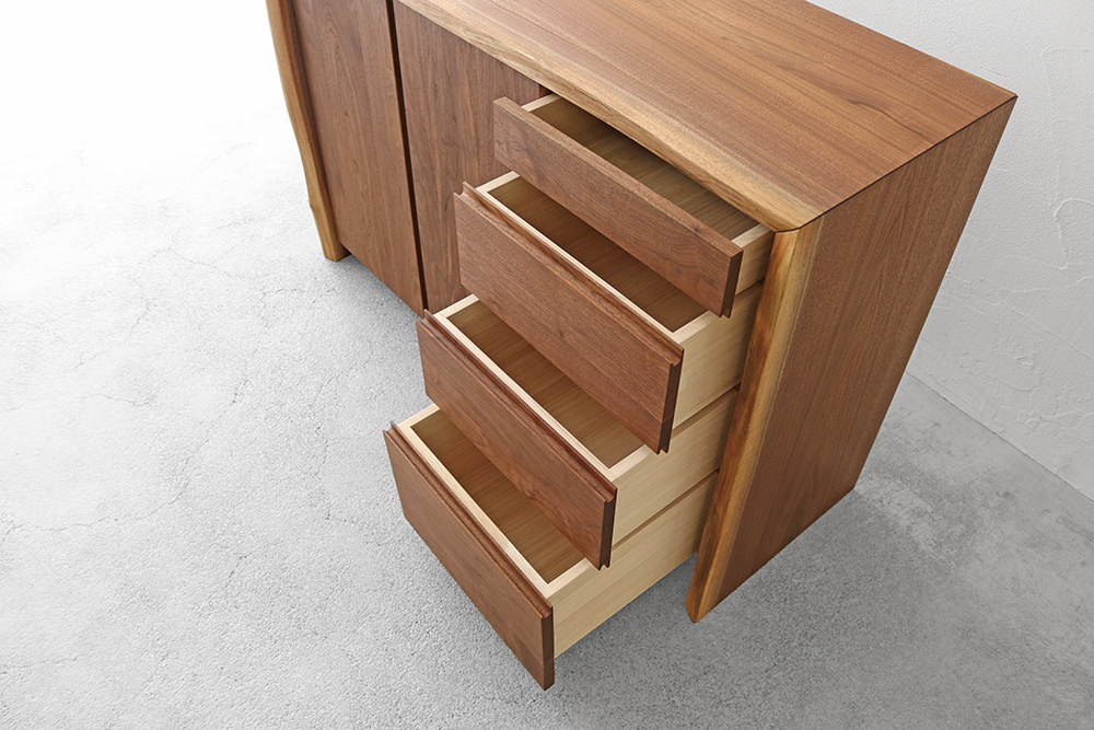 | 仕 様 | 天板・側板・前板:ウォールナット無垢材 引き出し内部:桐材 |