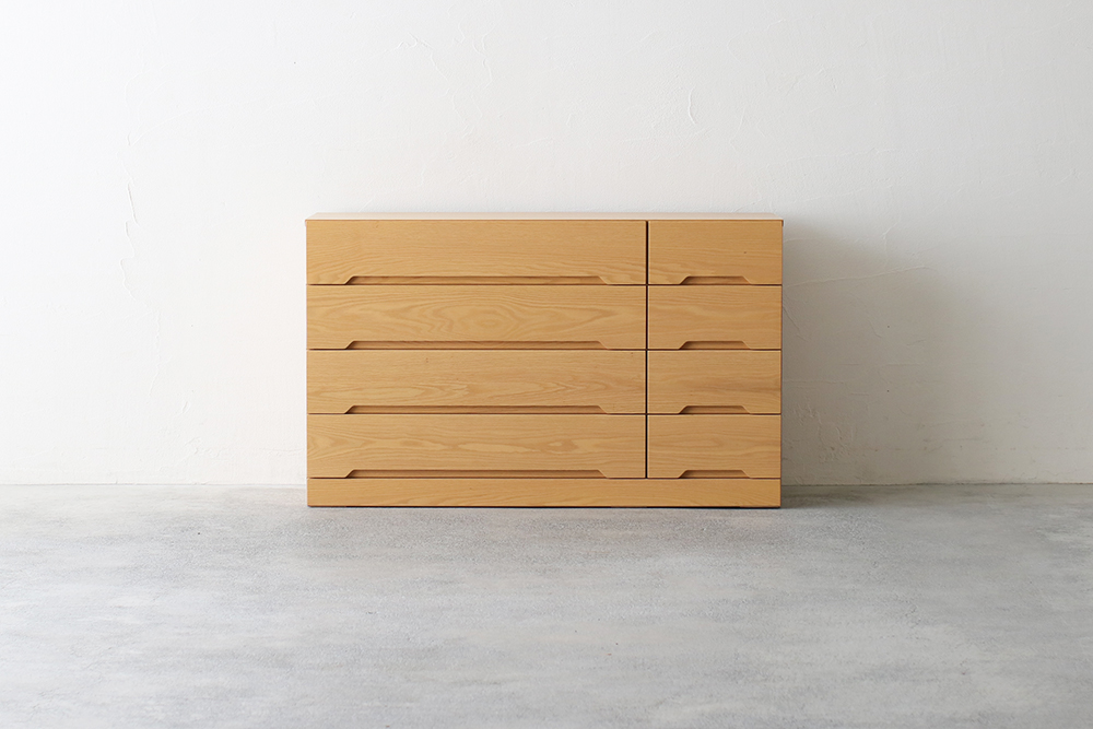 | 仕 様 | 前板:オーク無垢材 天板・側板:オーク突板材 引き出し内部:楠材 |